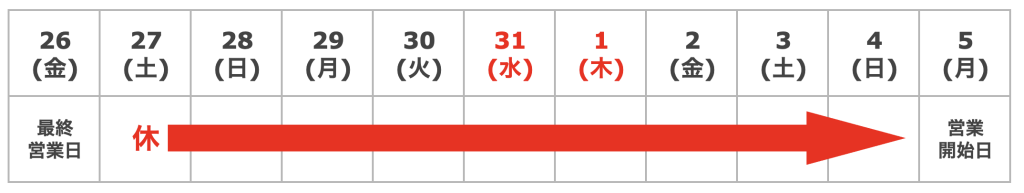 休業期間:2025年12月27日(土)~2026年1月4日(日)